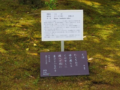●歌は、「たらちねの母がその業る桑すらに願へば衣に着るといふものを」である。 奈良市春日野町 春日大社神苑萬葉植物園(12)万葉歌碑<プレート>(作者未詳) ●歌碑(プレート)は、奈良市春日野町 春日大社神苑萬葉植物園(12)にある。 ●歌をみて…