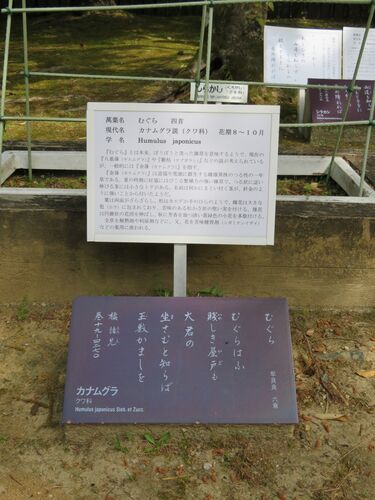 ●歌は、「葎延ふ賤しきやども大君の座さむと知らば玉敷かましを」である。 奈良市春日野町 春日大社神苑萬葉植物園(89)万葉歌碑<プレート>(橘諸兄) ●歌碑(プレート)は、奈良市春日野町 春日大社神苑萬葉植物園(89)にある。 ●歌をみていこう。 …