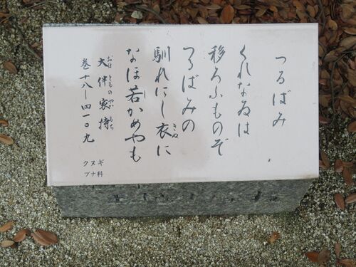 ―その1764― ●歌は、「紅はうつろふものぞ橡のなれにし衣になほしかめやも」である。 坂出市沙弥島 万葉樹木園(38)万葉歌碑(大伴家持) ●歌碑は、坂出市沙弥島 万葉樹木園(38)にある。 ●歌をみてみよう。 題詞は、「教喩史生尾張少咋歌一首并短…