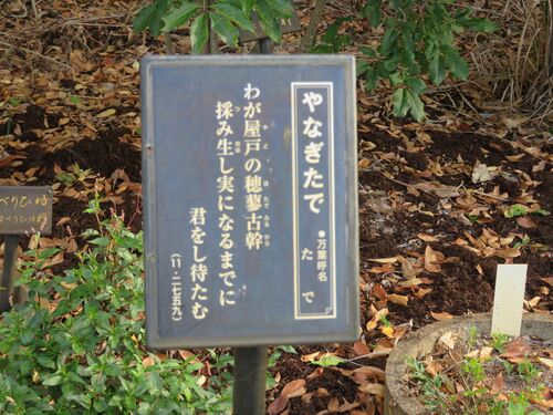 ―その1914― ●歌は、「我がやどの穂蓼古幹摘み生し実になるまでに君をし待たむ」である。 松山市御幸町 護国神社・万葉苑(79)万葉歌碑<プレート>(作者未詳) ●歌碑(プレート)は、松山市御幸町 護国神社・万葉苑(79)にある。 ●歌をみていこう…