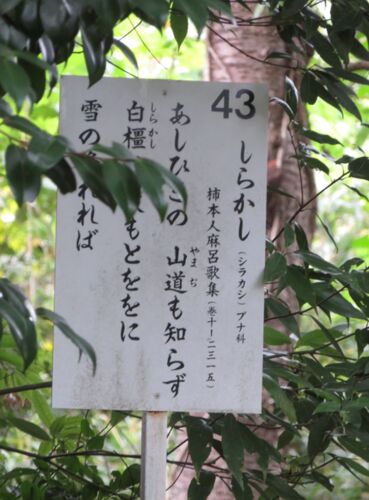 ●歌は、「あしひきの山道も知らず白橿の枝もとををに雪の降れれば」である。 茨城県石岡市小幡 ライオンズ広場万葉の森万葉歌碑(プレート)(柿本人麻呂歌集) 20230927撮影 ●歌碑(プレート)は、茨城県石岡市小幡 ライオンズ広場万葉の森にある。…