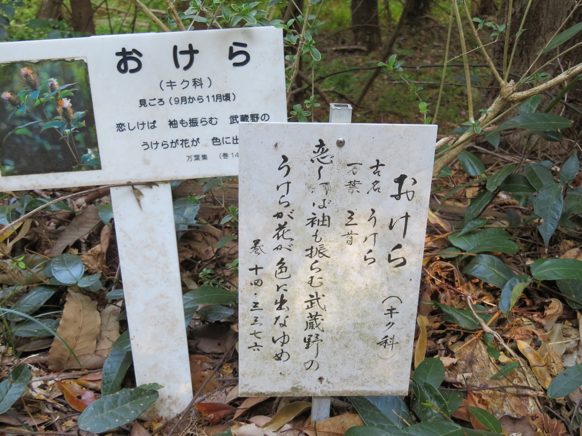 先日、広島大学附属福山中・高等学校の万葉歌碑を見せていただいた折に、ご親切に校内を案内していただいた上に思いがけずも頂戴した「万葉植物物語(同校編著 中国新聞社発行)に「おけら」について、「・・・地味で目立たない花ですが、万葉人はこのような花をよく見ていて、しかも上手に歌に取り入れています。その感性の素晴らしさに驚嘆します」と書かれており、漢方薬としての効用、八坂神社のおけら詣りにも言及されている。活用させていただきます。