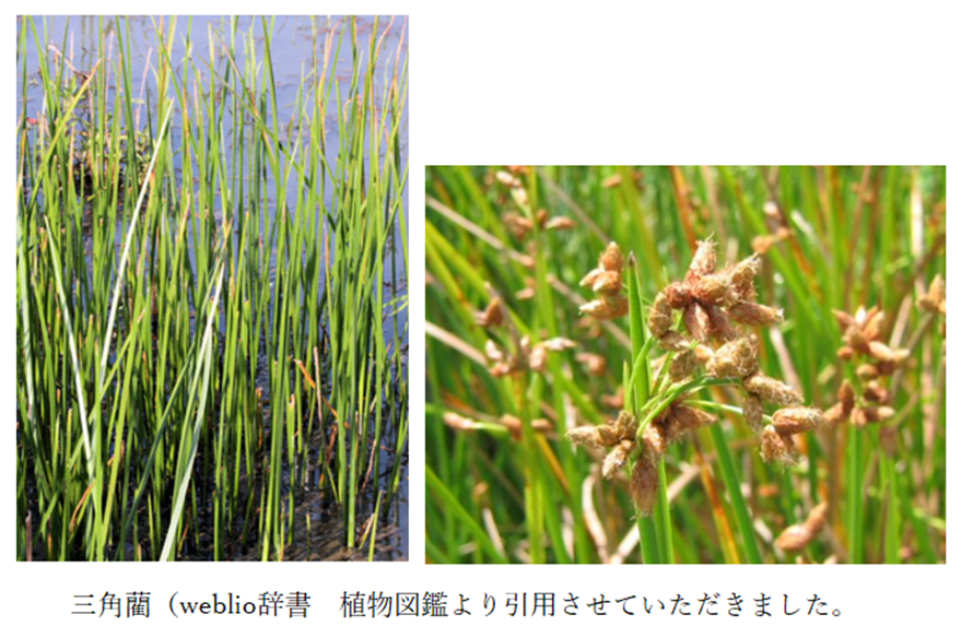 (注の注)さんかくい【三角藺】:カヤツリグサ科の多年草。高さ50~90センチ。茎は三角柱。葉は鞘(さや)状となり、茎を包む。夏から秋、茎の先に放射状に小花をつける。(weblio辞書 デジタル大辞泉)