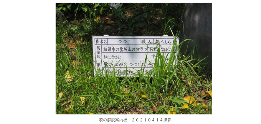 この歌ならびに歌碑については、拙稿ブログ「万葉歌碑を訪ねて(その1010)」で紹介している